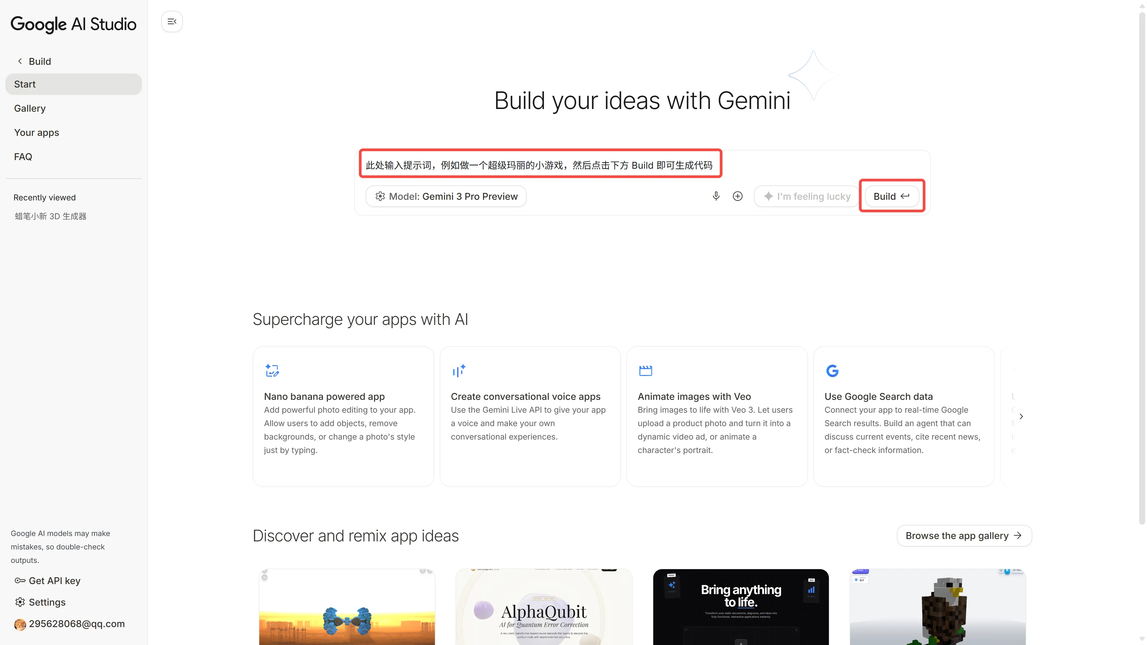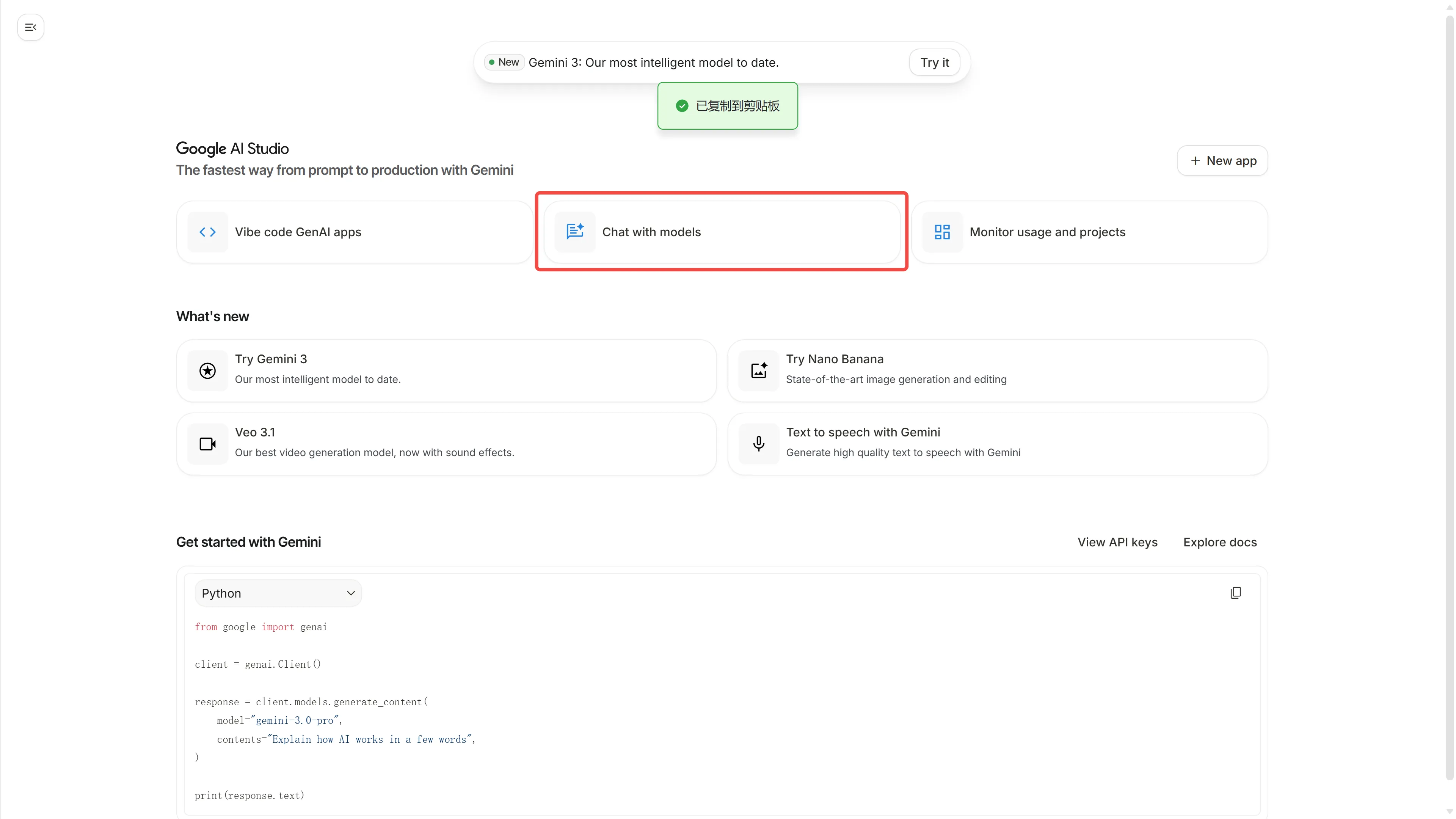 - 访问 AI Studio 官网 :https://aistudio.google.com/