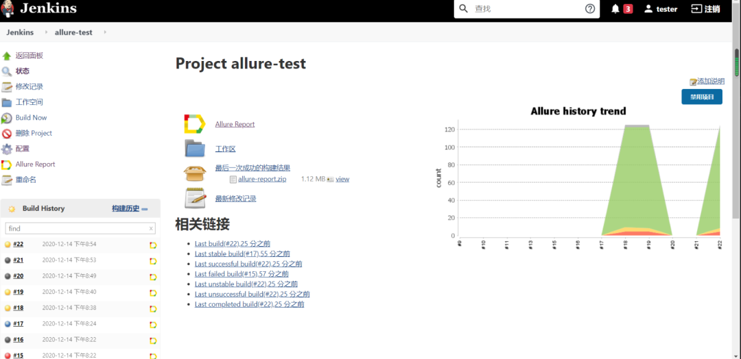 注意:新增构建后操作,Allure report,输入report所在目录名称:与Windows批处理命令中设置的报告目录名称保持一致(这里使用的是report名称)