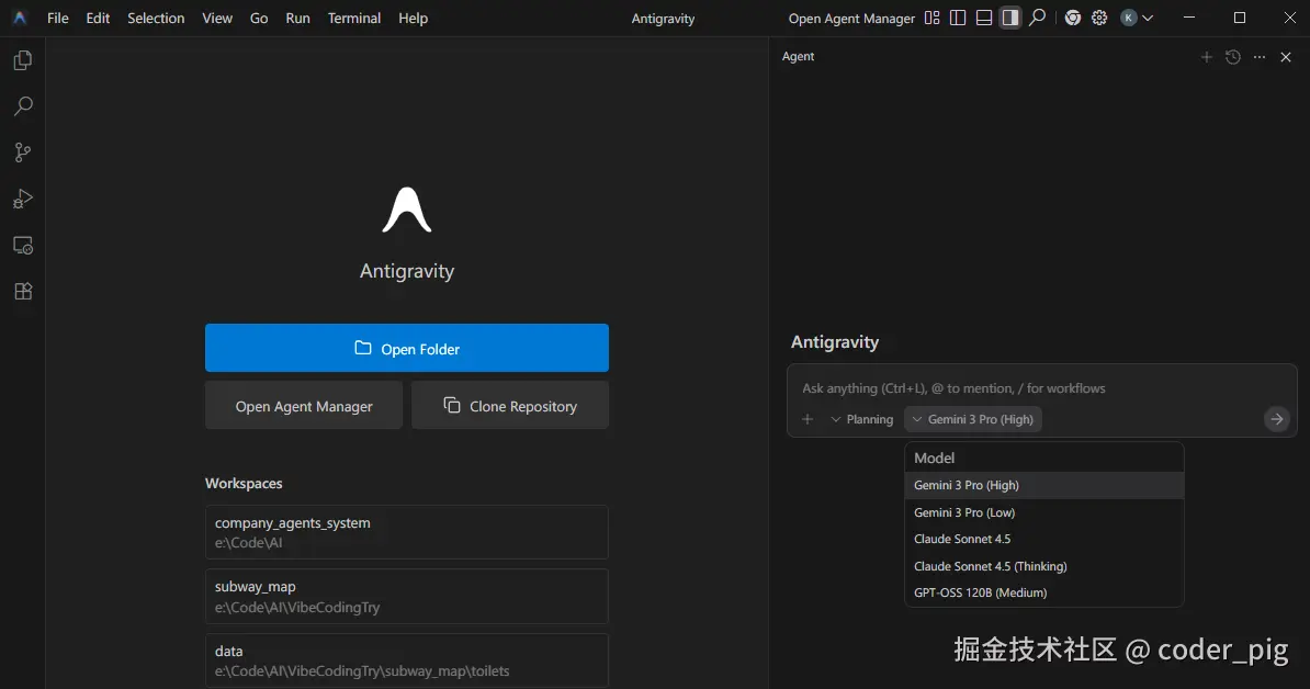 🤔 目前杰哥还没 深度体验 这个新模型,不好评价,只实测下这个新出的 AI IDE ------ Antigravity 吧~