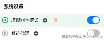如图,先检查 TUN (全局/系统代理) 模式有没有开: