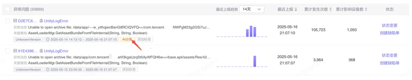 以上合并分类和新增分类的情况整体符合正确合并要求,当前测试每条数据可以在毫秒级别响应,完全可以满足线上要求,已在部分数据量较大的项目中试点开放生效。如图所示,错误issue直接应用基于AI的分类模型进行分类。