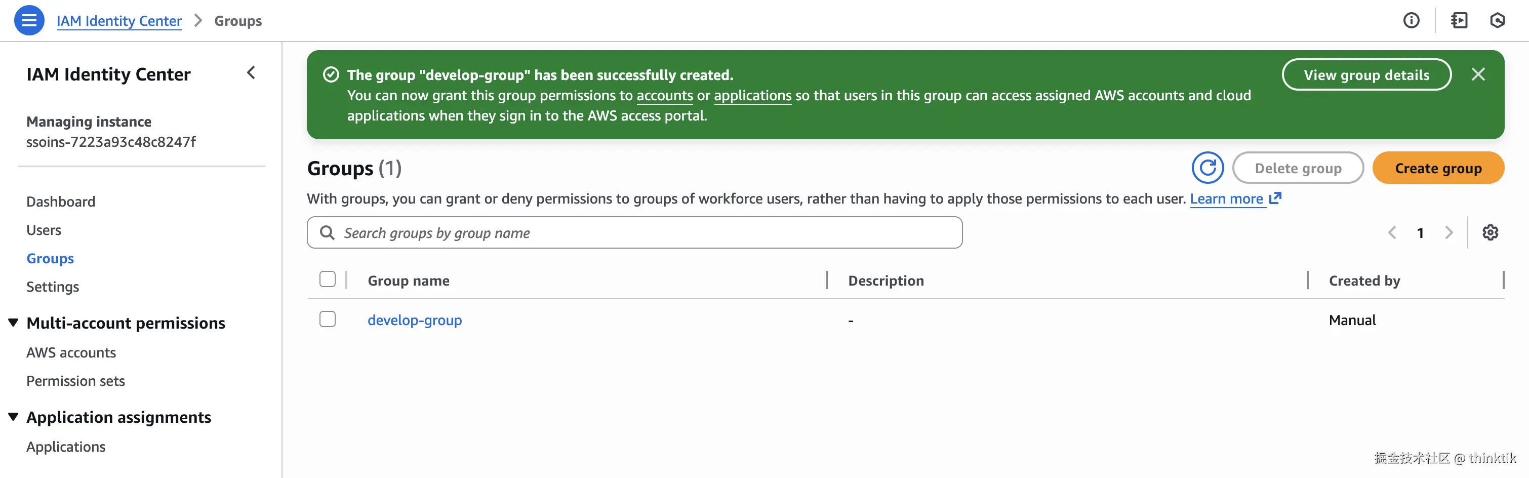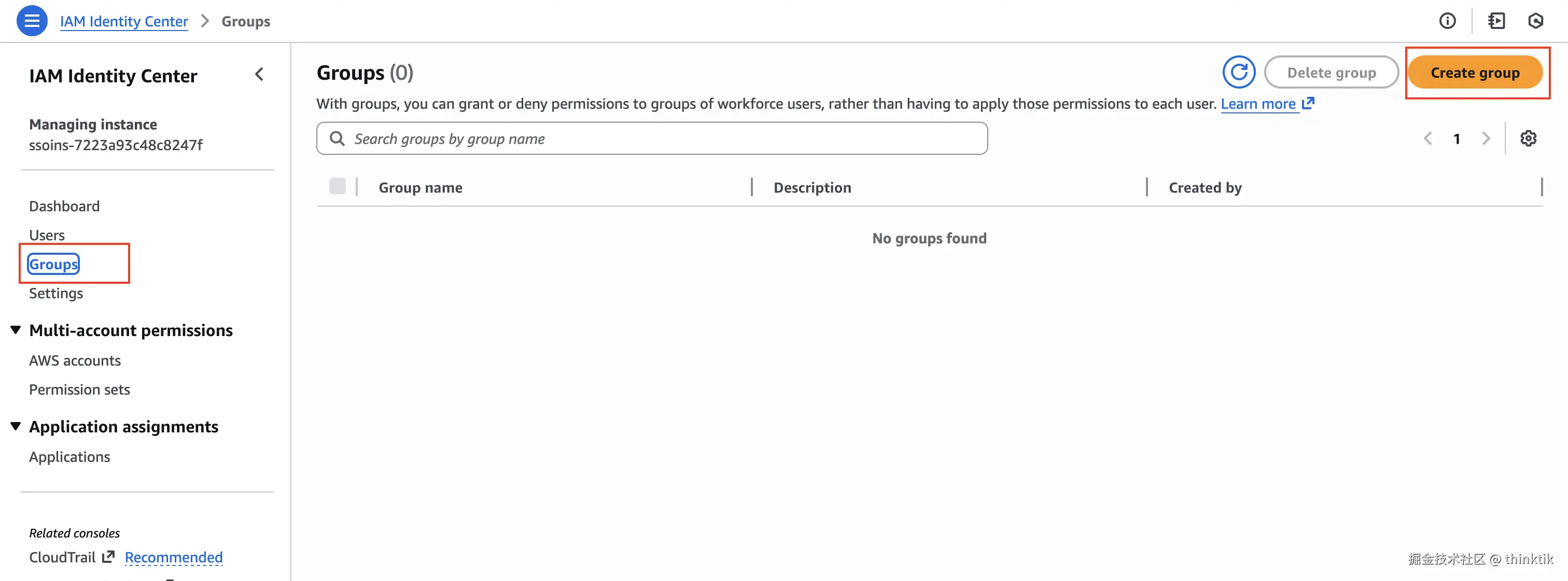 首次订阅时我们可能没有用户组,那么我们可以直接进入到AWS IAM Identity Center进行组的创建