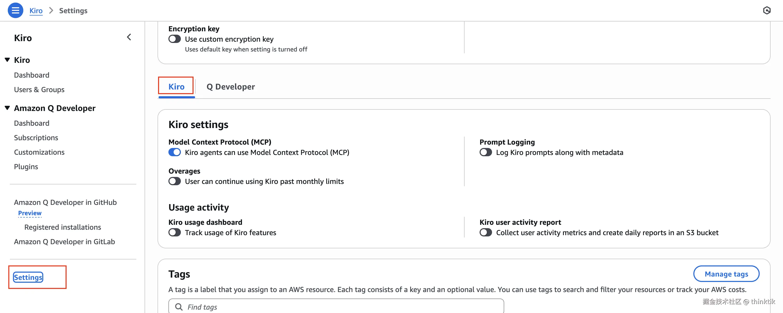 我可以调整Kiro的全局产品级设置,比如打开MCP功能,开启token用量追踪,允许套餐用完后继续超额付费使用等。