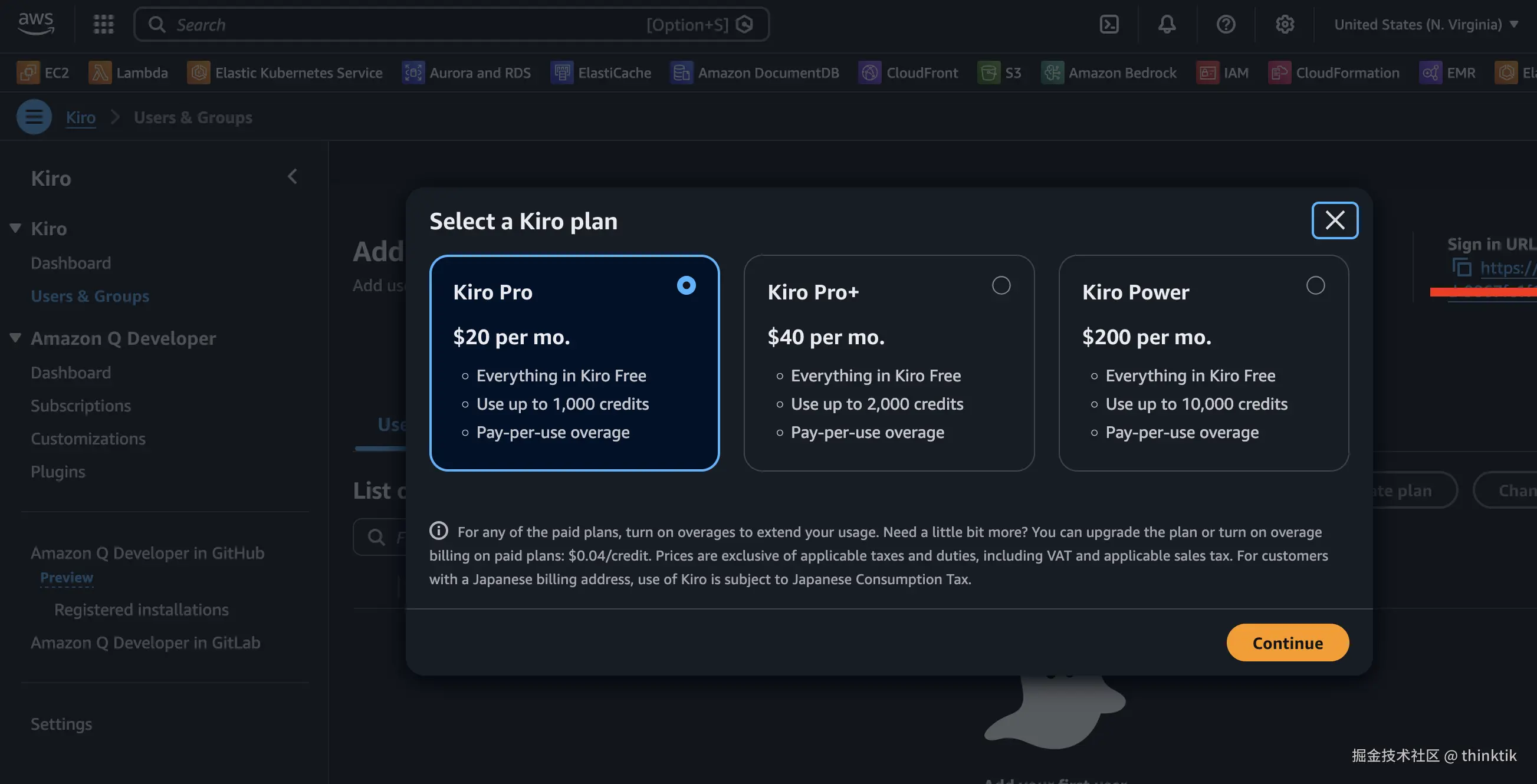 在AWS上订阅Kiro付费版
