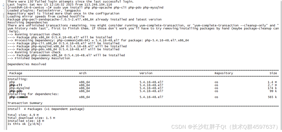 sudo yum install php php-opcache php-cli php-pdo php-mysqlnd