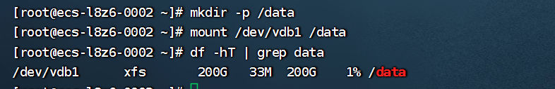 | 4 | 挂载 | mount /dev/vdb1 /data |