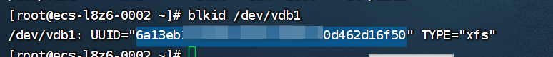 /dev/vdb1: UUID="6a13eb19-e0ee-4297-b596-b0d462d16f50" TYPE="xfs"