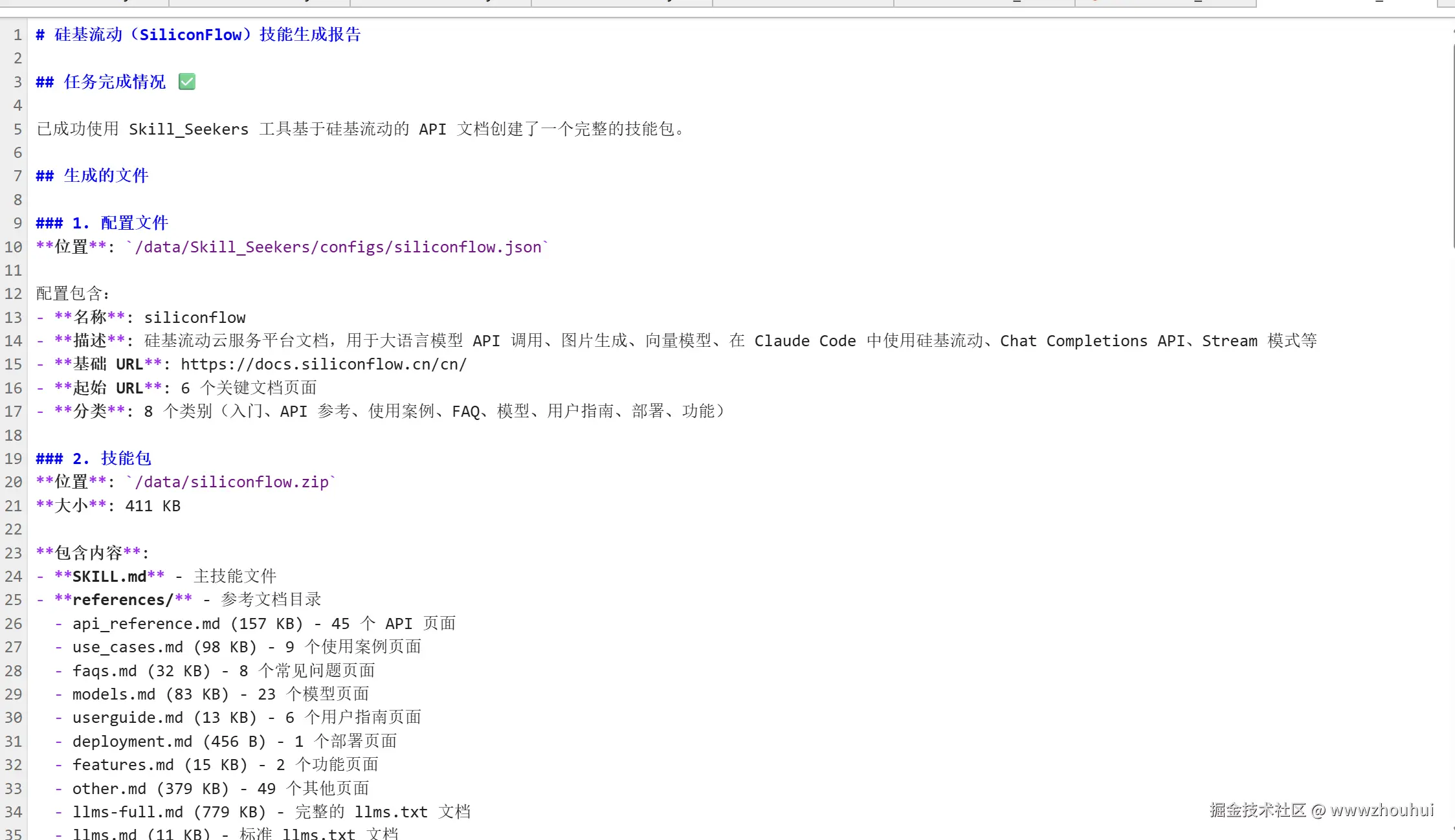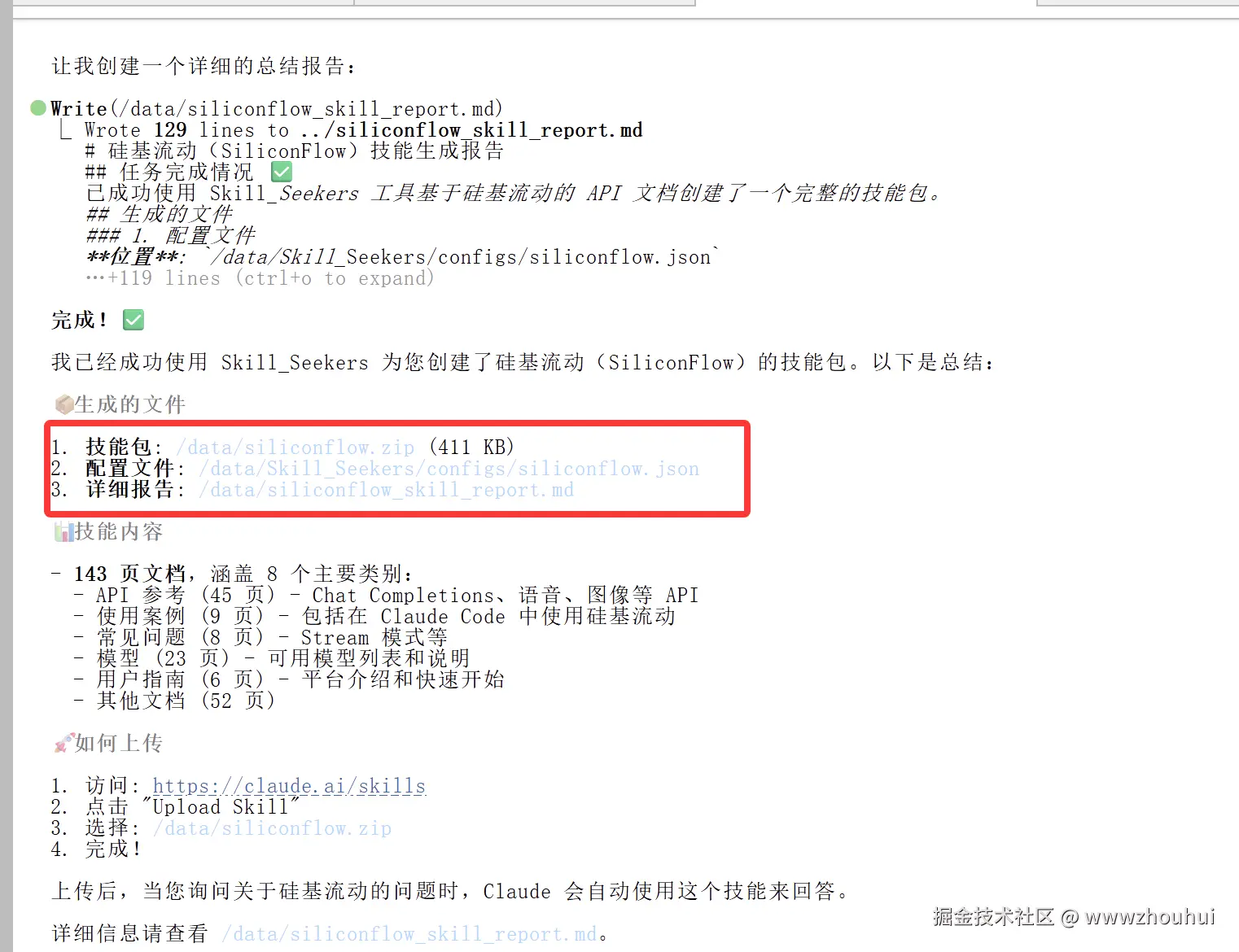 今天我们通过Skill Seekers这个开源工具,成功将硅基流动的API文档转换成了Claude可直接使用的技能包,整个过程只用了不到10分钟,相比手动整理文档节省了数小时的工作时间。更重要的是,生成的技能包质量非常高,包含了完整的API参考、使用示例、最佳实践,AI基于这个技能包生成的代码完全可以直接用于生产环境,不需要任何修改。
