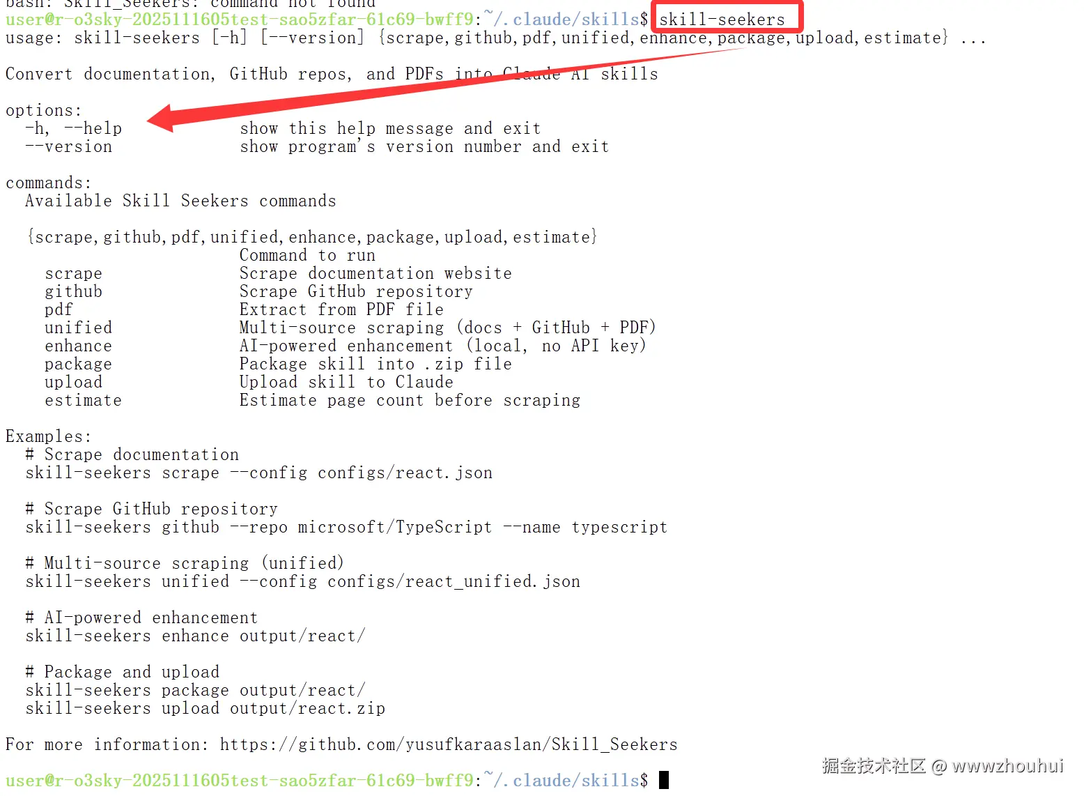 从截图可以看到,当前运行环境已经安装好 skill-seekers,我们可以直接使用。