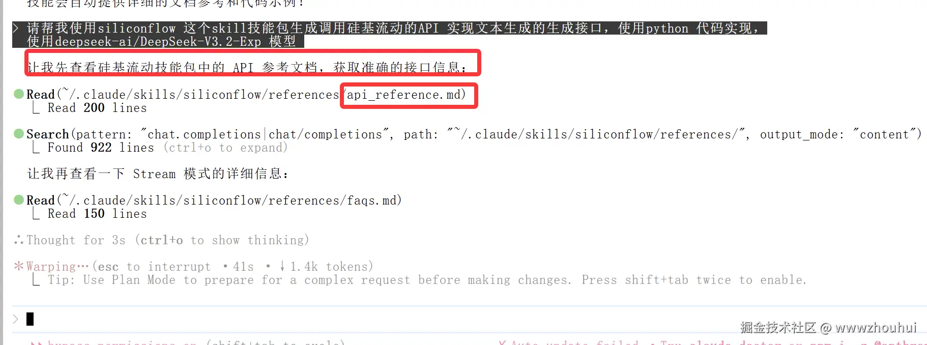 从截图中可以看到,AI理解了我们的需求,开始通过fetch来获取硅基流动提供的API文档。