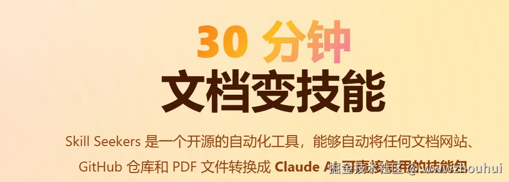 Skill Seekers 是一个开源的自动化工具,它能够自动将任何文档网站、GitHub仓库和PDF文件转换成Claude AI可直接使用的技能包。核心原理是通过智能爬虫抓取文档内容,使用AI分析和归类,最终打包成标准的.zip技能文件。只需30分钟,就能完成从文档URL到Claude可用技能包的全流程转换。