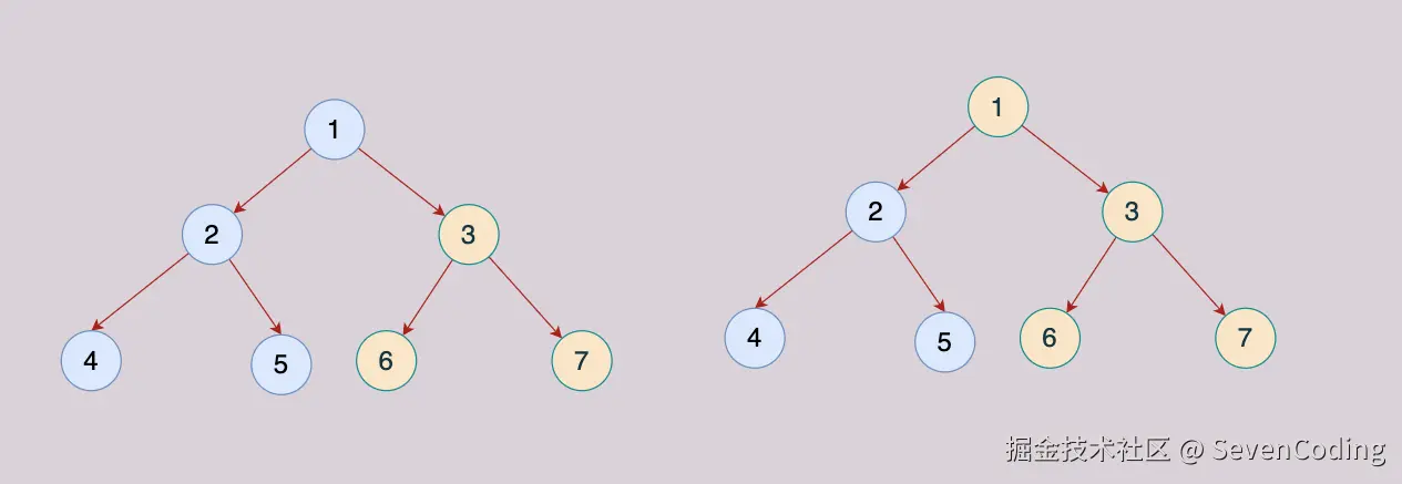 应该如何避免这种重复计算呢?前⾯的是⾃顶向下的⽅式,因为每个节点都得把⼦树计算⼀遍才需要重复,如果我们从下往上计算,那不就避免了重复计算。后序遍历,先判断子树平衡性,再判断当前节点,对⽐逻辑如下: