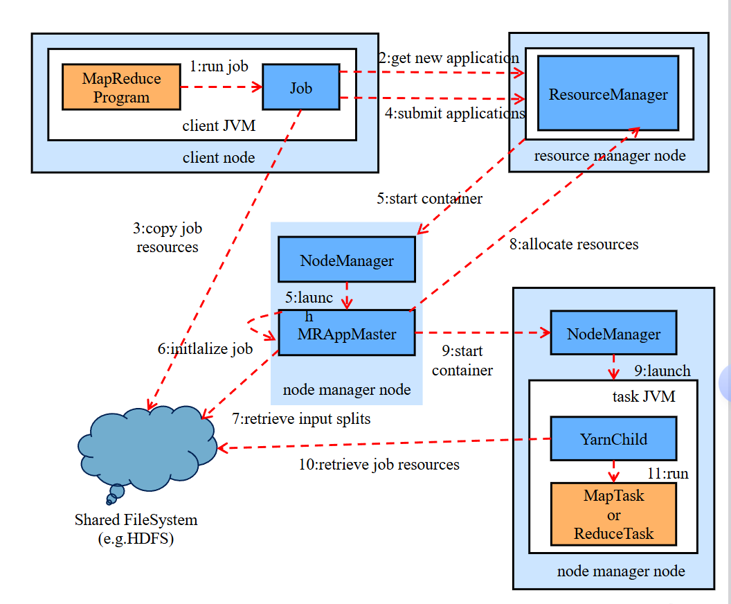 从 NodeManager 上启动和监控具体的任务(如 Map Task, Reduce Task)。
