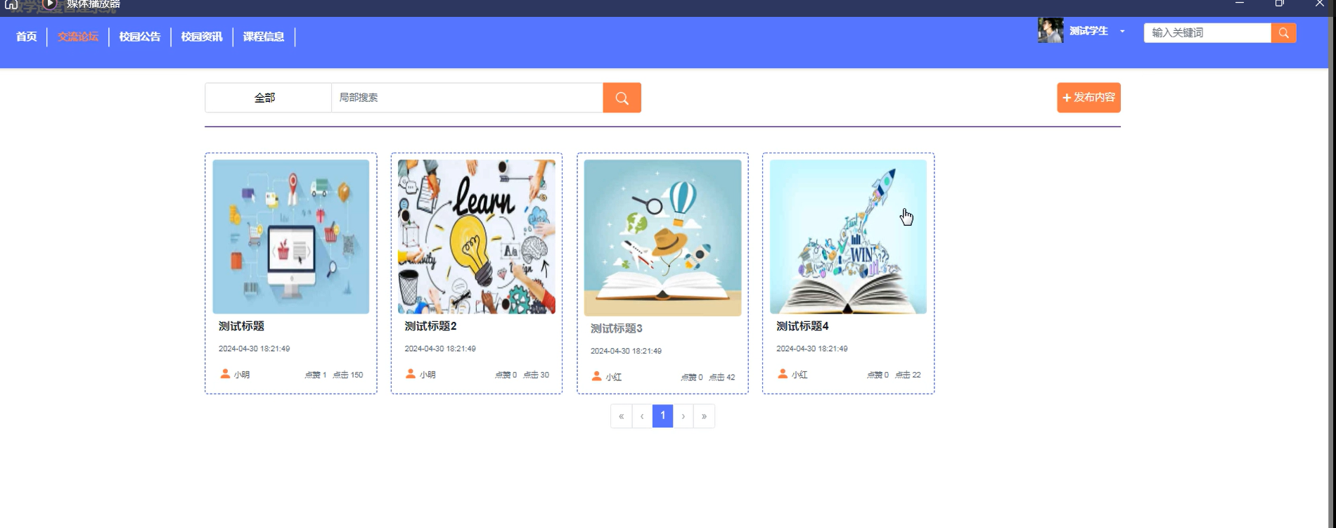 | 预期结果 | 页面显示包含有搜索关键字的校园资讯 |