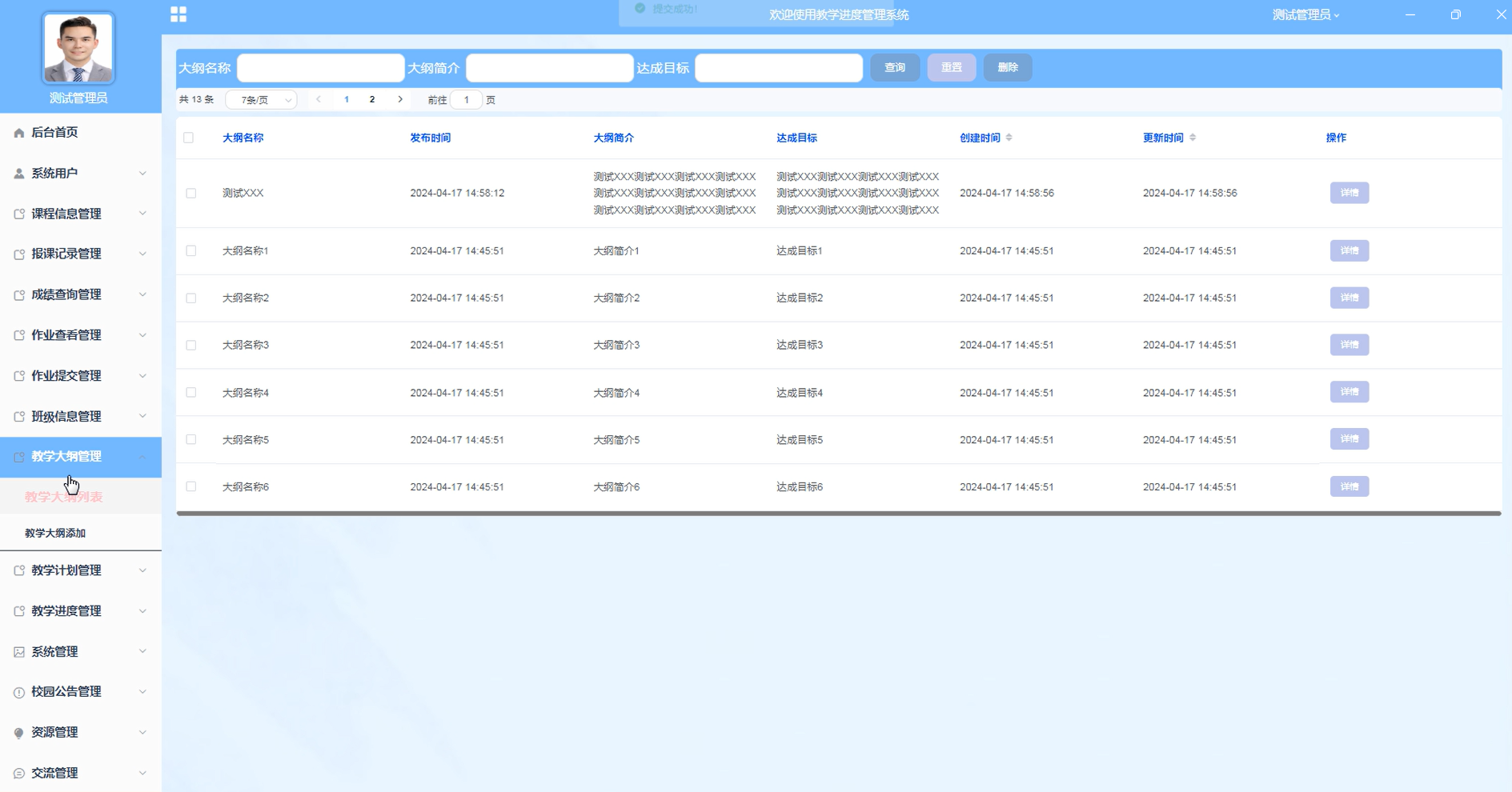 图4-16教学大纲管理界面图