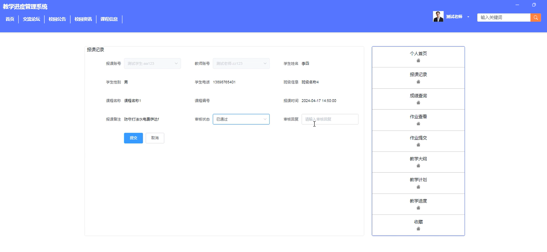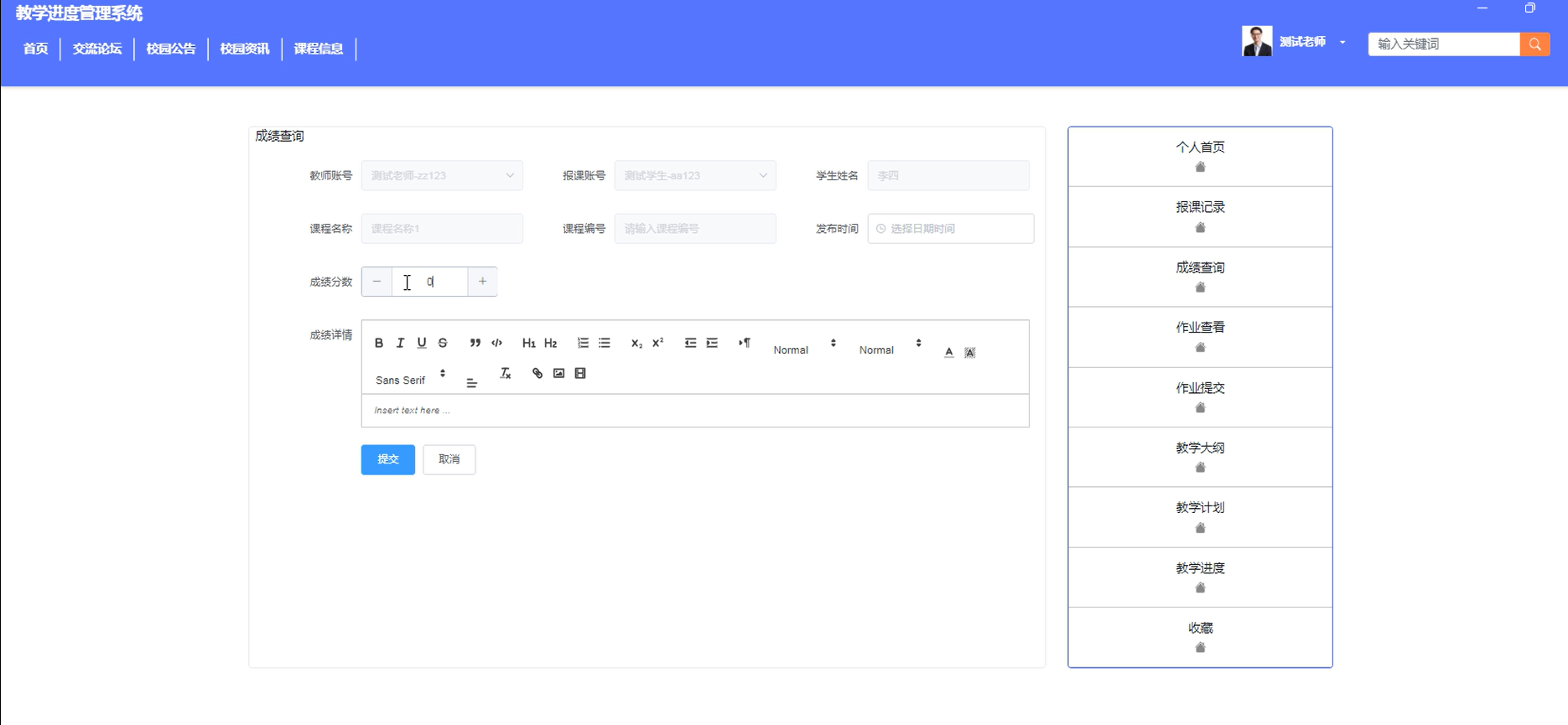 4.3.3 教学进度管理界面