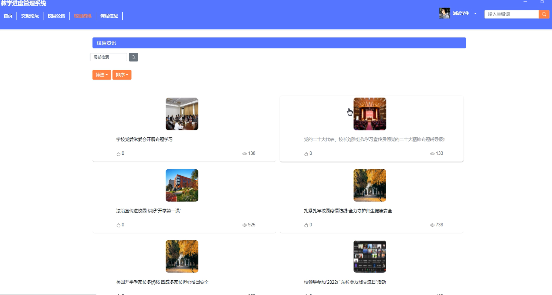 校园资讯搜索功能测试:
