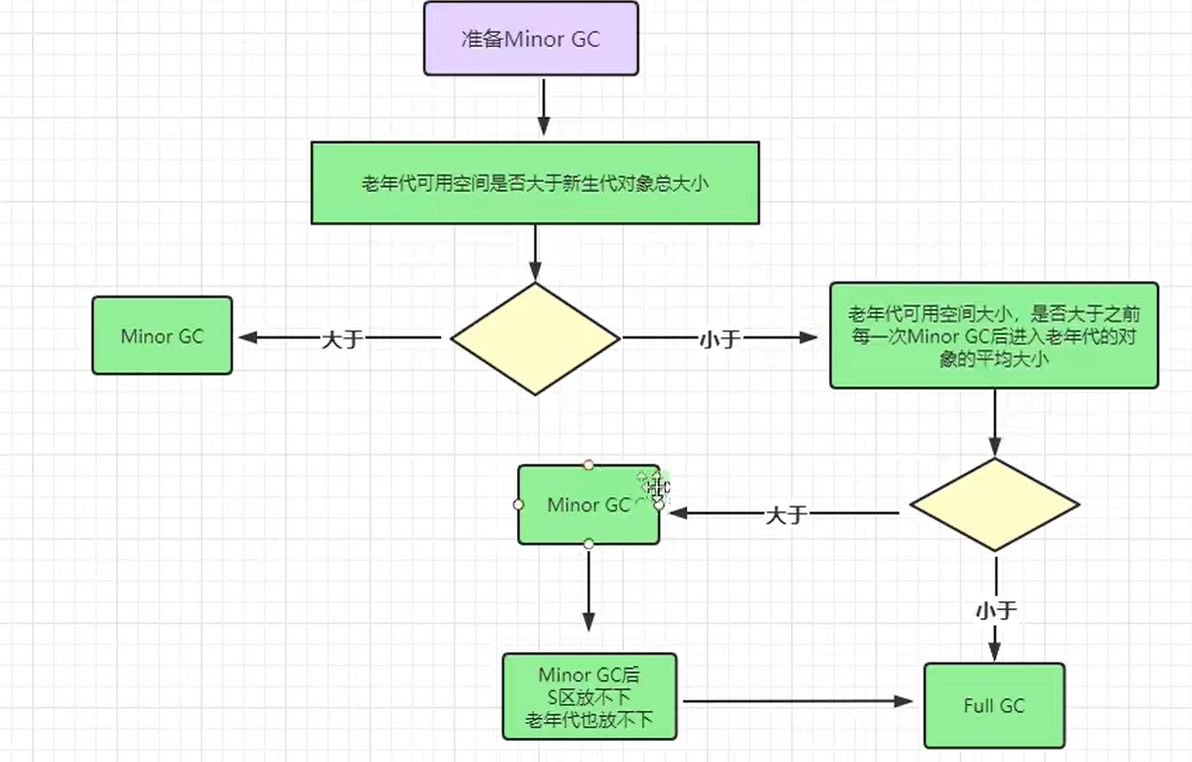 - 若满足:直接执行 Minor GC。即使 Minor GC 后所有对象存活(需转入老年代),老年代也能容纳,无风险。