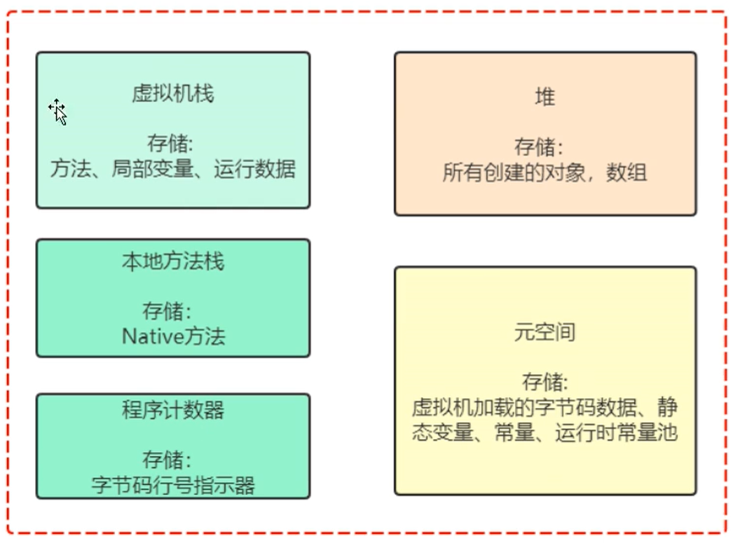 - 存储内容:存放被加载的类信息、字段、静态变量、常量池、即时编译的代码等数据。