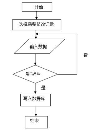 程序里面的数据也会出现错误,因此就有相应的修改数据的功能,绘制的程序修改流程见下图。此过程也是跟后台数据库进行数据同步显示。