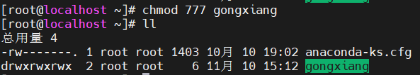 赋予最大权限(确保客户端可访问):chmod 777 /root/gongxiang