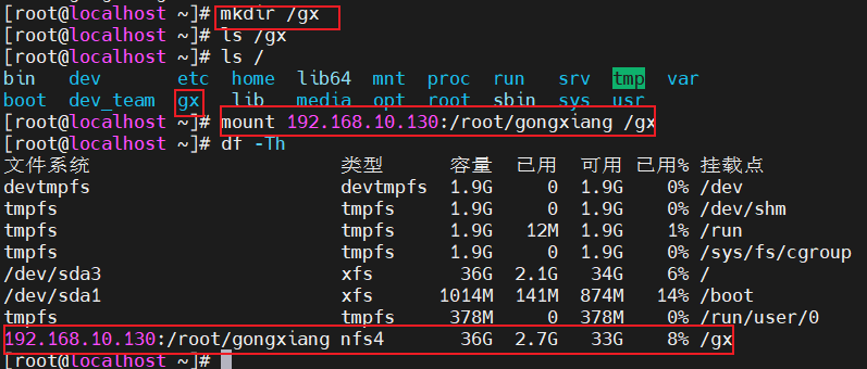 192.168.10.130:/root/gongxiang /gx nfs defaults,_netdev 0 0 -