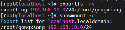 /root/gongxiang 192.168.10.0/24(rw,sync,no_root_squash)