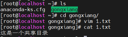 服务器端:cd /root/gongxiang && vim 1.txt(写入测试内容)