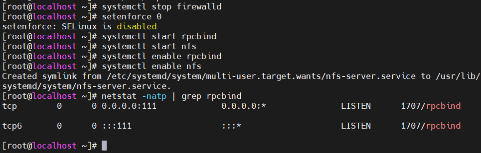 启动服务:systemctl start rpcbind && systemctl start nfs