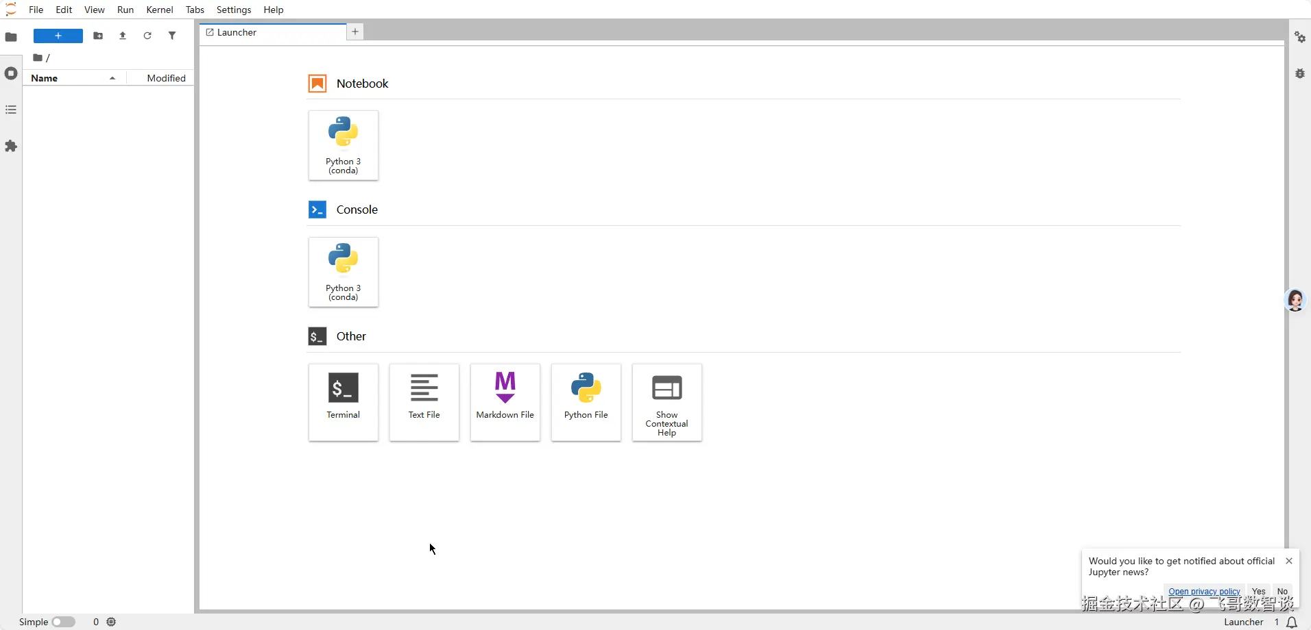 2、在 Launcher 界面选择 Python File ,粘贴代码即可。
