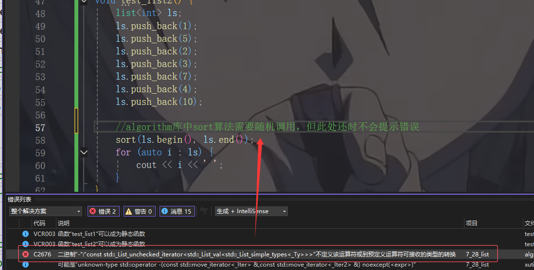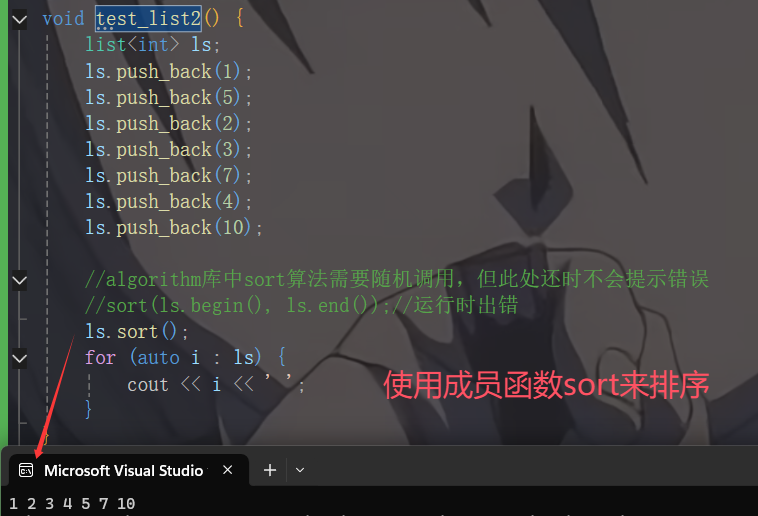 由于算法库<algorithm>中sort不支持双向迭代器,所以list自己实现了一个sort成员函数来进行排序。