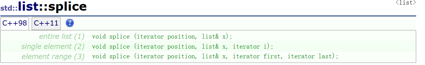 splice:可以将一个链表,一个链表节点,一个迭代器区间内的链表节点,转移(剪切)到调用对象的指定位置(被转移的位置数据消失);