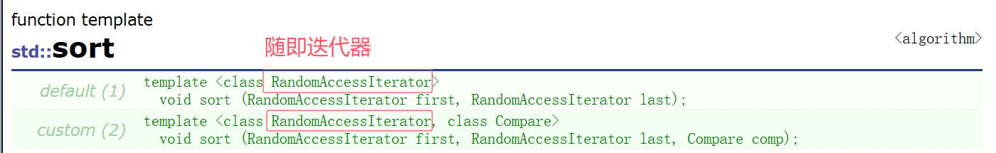 算法库中的sort就只能使用随机迭代器来访问,因为其底层需要对迭代器使用+-操作;双向迭代器和单向迭代器没有实现这两个操作;