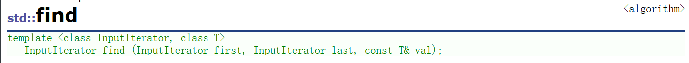 而find中,参数为InputIterator,使用时理解为单向、双向、随机迭代器三种迭代器都可以使用