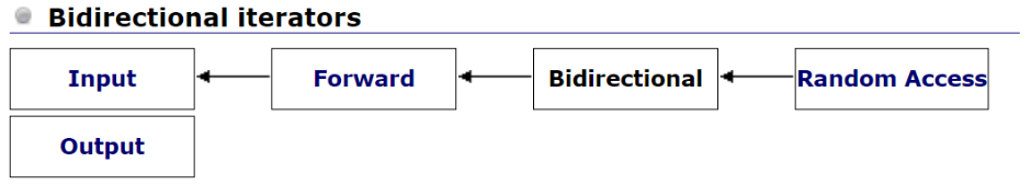 随机迭代器为双向和单向迭代器的父类,其使用时为包含关系: