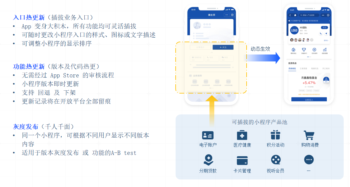 金融行业,某券商App通过引入FinClip,快速构建了行情、交易、资讯、理财等多元服务生态。新业务上线周期从原来的一个月缩短至一周,用户活跃度提升40%,成功实现了从单一交易工具到综合金融服务平台的转型。