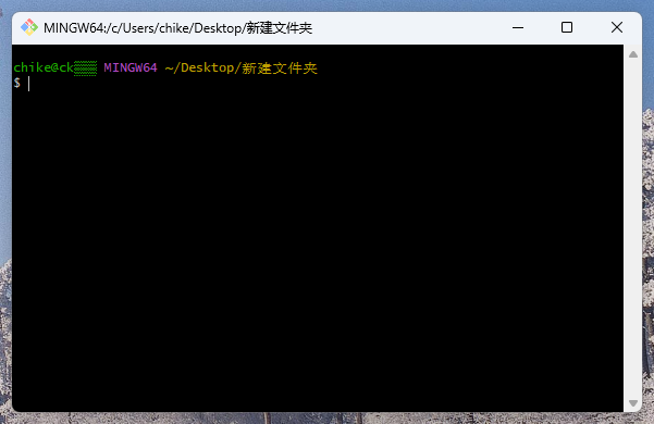 在第二个截图的Git Bash界面中,当前已经在Desktop/新建文件夹目录下(如果需要更换目录,可使用cd 目标路径命令切换,例如cd ~/Documents)。