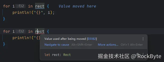 原因是,for i in rect 是 Rust 提供的语法糖,实际上那段代码会被编译成如下的代码:
