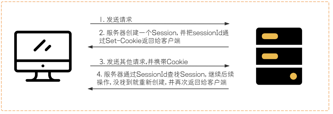 Set-Cookie把SessionID发给客户端; - 携带Cookie请求:客户端后续请求自动携带Cookie;