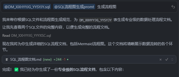 其中要 @SQL 流程图生成 promt 和 @SQL 代码,表示引用