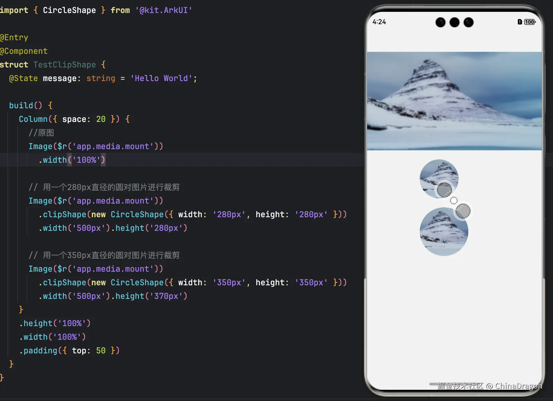 .clipShape(new CircleShape({ width: '280px', height: '280px' }))