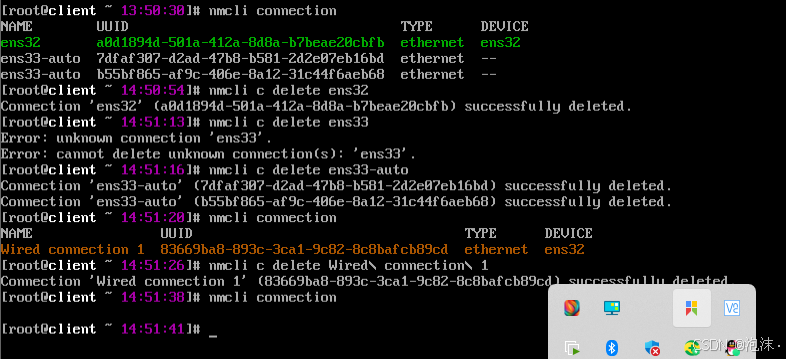 [root@centos7 ~ 10:35:58]# nmcli c delete Wired\ connection\ 1