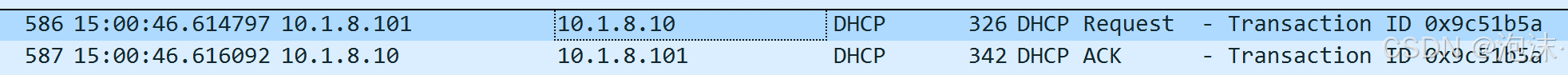- DHCP服务器收到DHCPREQUEST数据包后,会发送 DHCPACK 数据包,确认客户端对客户端IP地址具有独占权限,直到租约到期为止。