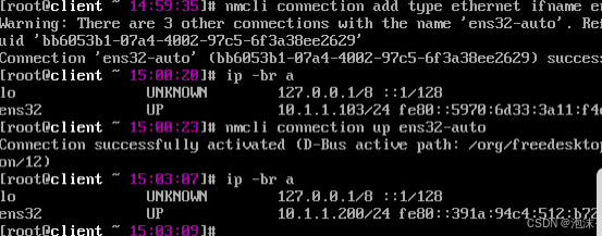 [root@dhcp ~ 14:57:46]# nmcli connection up ens32