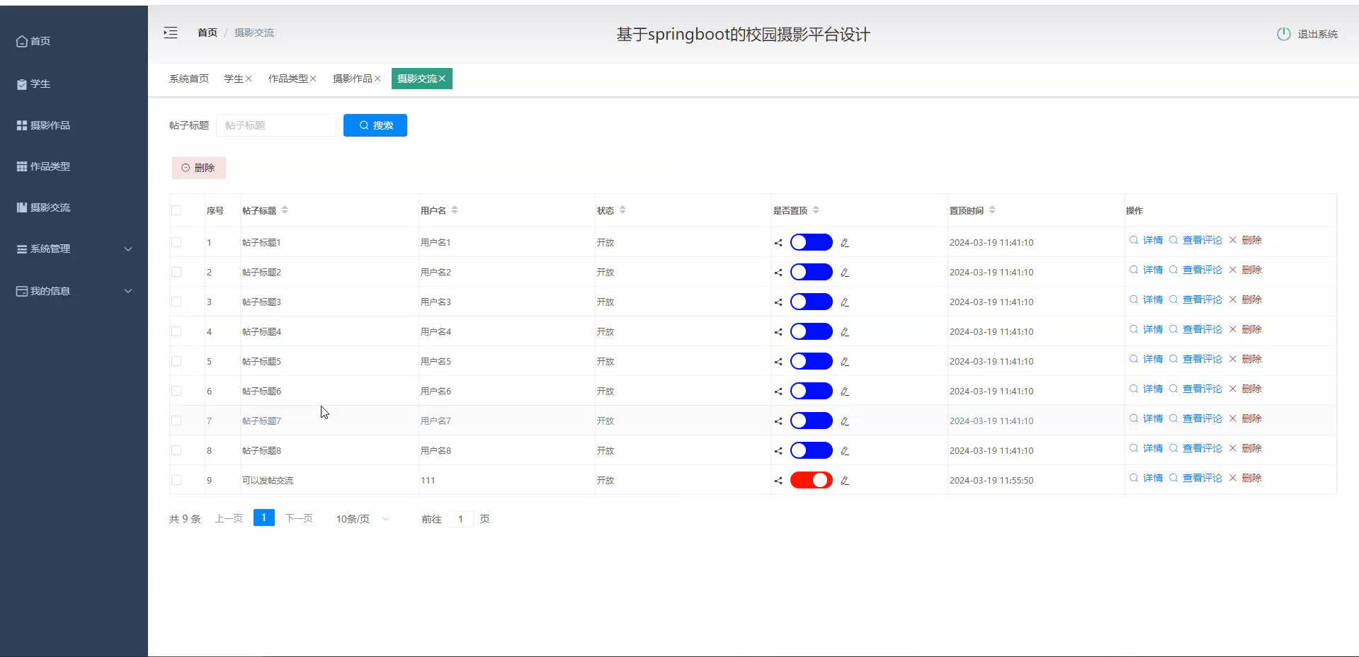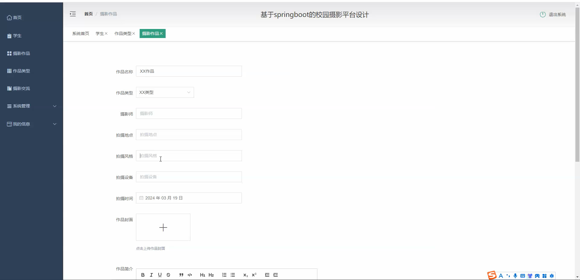 本研究旨在基于Spring Boot框架开发一款智能化、社交化、易扩展的校园摄影平台,解决现有系统痛点,提升校园摄影内容传播效率与用户体验。