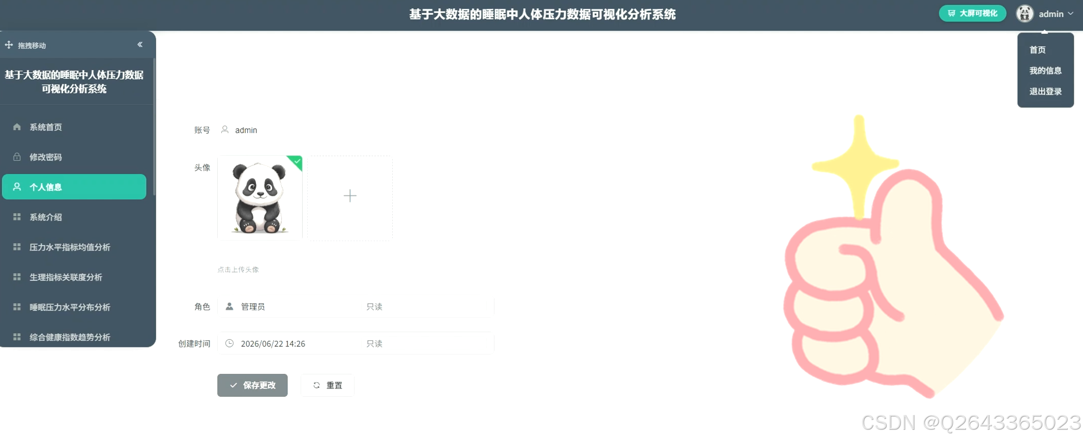 现代生活节奏加快导致睡眠障碍与慢性压力问题日益普遍,传统监测手段难以捕捉睡眠期间生理参数的细微变化。大数据技术为海量睡眠数据存储与处理提供支撑,Spark与Hadoop实现分布式计算,Python完成数据挖掘,MySQL存储结构化数据,Vue与Echarts构建交互式可视化界面。系统整合多源生理信号,建立压力水平分级模型,突破单一指标评估局限,为睡眠质量量化分析提供技术解决方案。