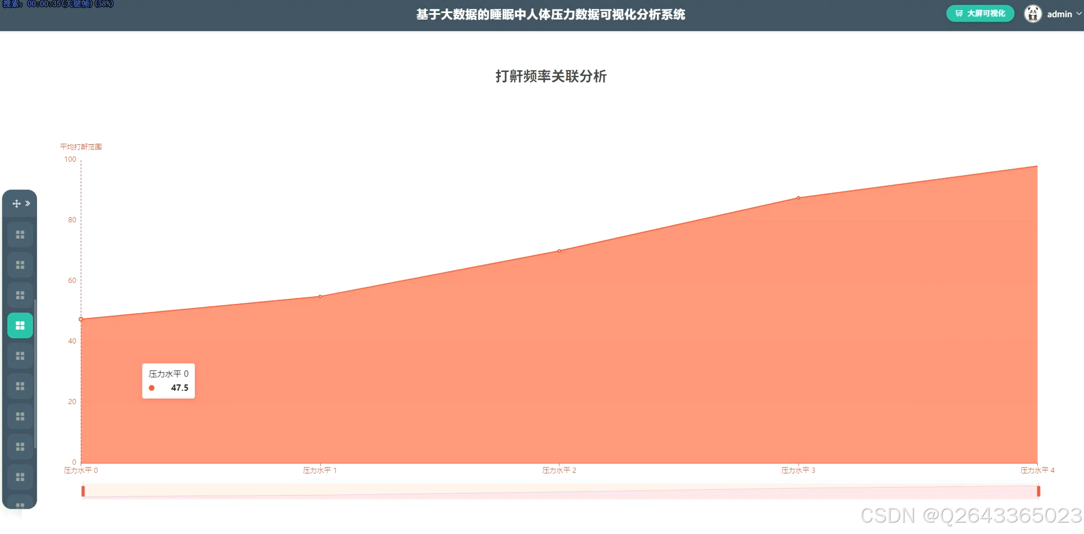 打鼾频率关联分析模块:分析打鼾范围与压力水平的对应关系。
