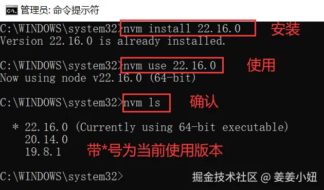 由于我是使用nvm管理node版本,我是通过cmd管理员身份运行nvm下载node22.16.0