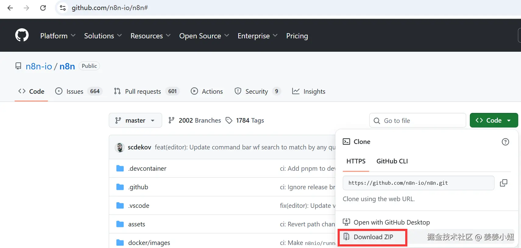 进入 github.com/n8n-io/n8n 下载zip