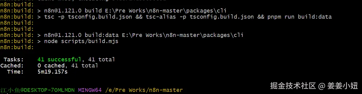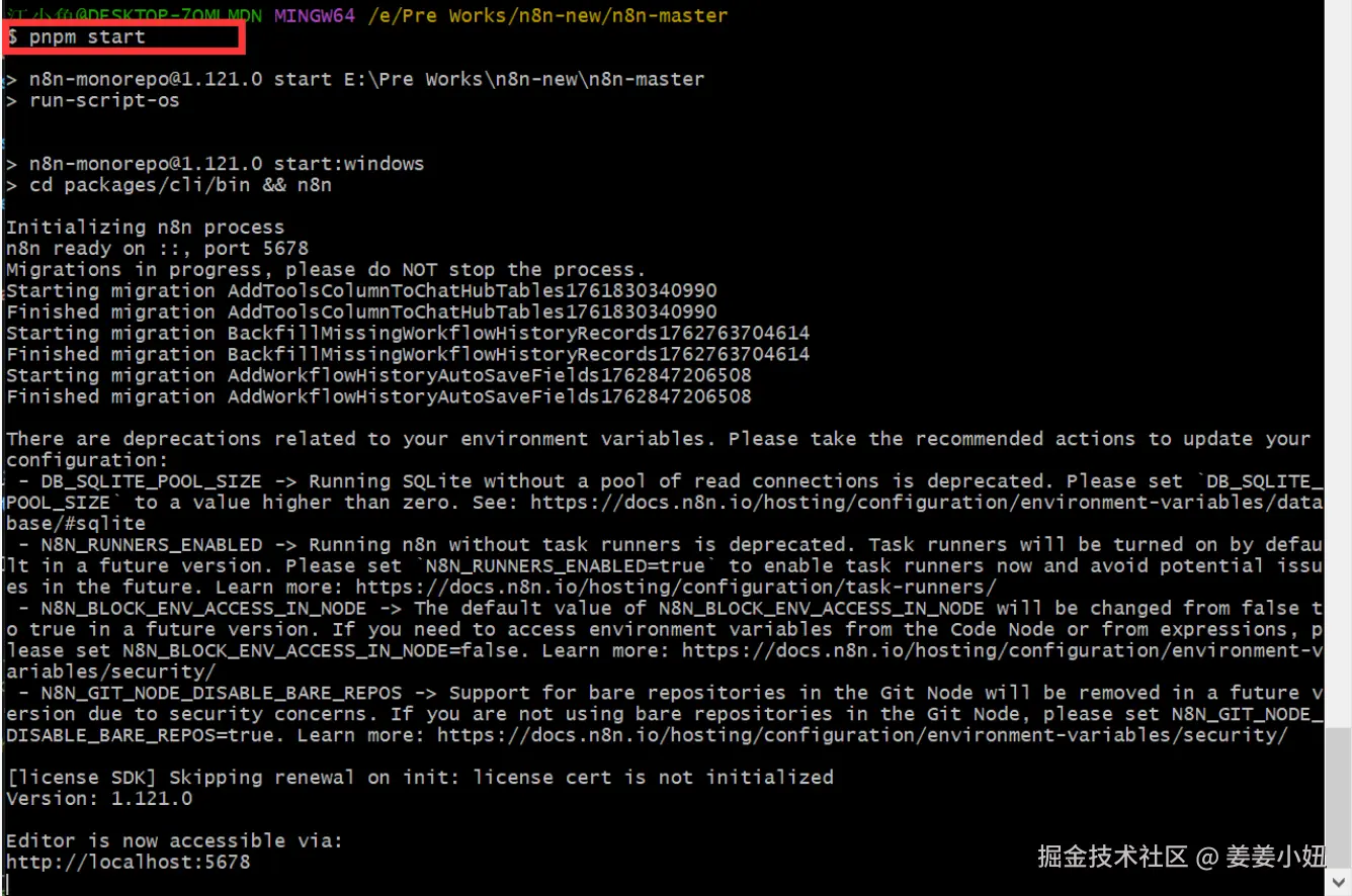 - 出错请检查打包后是否有packages\cli\dist\config是否存在,5678端口是否被占用,全局安装的n8n依赖包是否正在启动(我是直接删除了npm全局安装路径的n8n,非当前项目依赖)